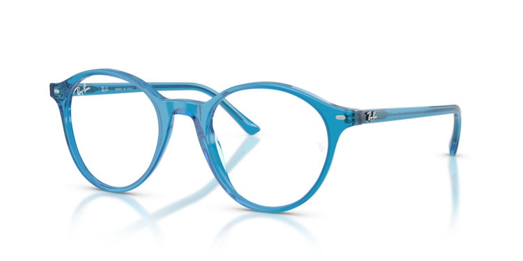 Acetat jest również materiałem, który bardzo dobrze trzyma kolor – intensywny niebieski odcień oprawek zachowuje swoją głębię na długo, nie matowieje i nie blaknie przy prawidłowej pielęgnacji. Dzięki temu okulary wyglądają estetycznie zarówno w oficjalnych sytuacjach, jak i podczas luźnych spotkań w gronie znajomych. Połączenie lekkości i trwałości sprawia, że model RX 5430 8442 sprawdzi się jako codzienny towarzysz podczas pracy w biurze, w domowym gabinecie, podczas wyjazdów służbowych czy zajęć na uczelni.